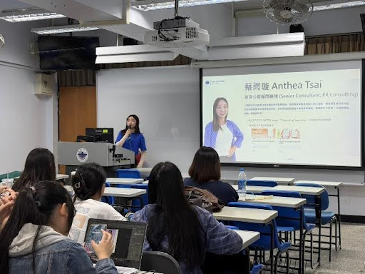 本場活動特別邀請到布爾喬亞公關協理孫育芝女士,分享她在公關領域的豐富經驗。憑藉跨足台灣、韓國、中國、英國等地的實戰經驗,孫協理深入剖析公關策略的精髓。她不僅詳細說明了公關與行銷的本質差異,更以實際案例分享危機處理要領。特別令人印象深刻的是她對職場倫理的見解,以及對品牌公關操作的獨到見地。透過微熱山丘等實際案例,讓學生深入理解公關實務運作。