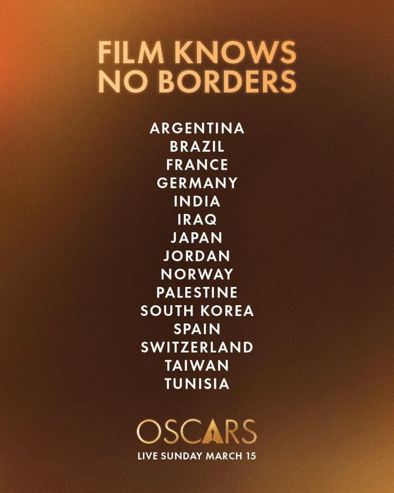 奧斯卡主辦單位「美國影藝學院」(Academy of Motion Picture Arts and Sciences)在社群平台Instagram、臉書、X貼出圖片,以「電影無國界」為標題,點名進入最佳國際影片下一輪投票的15部作品,稱「這是它們在地圖上的位置」。